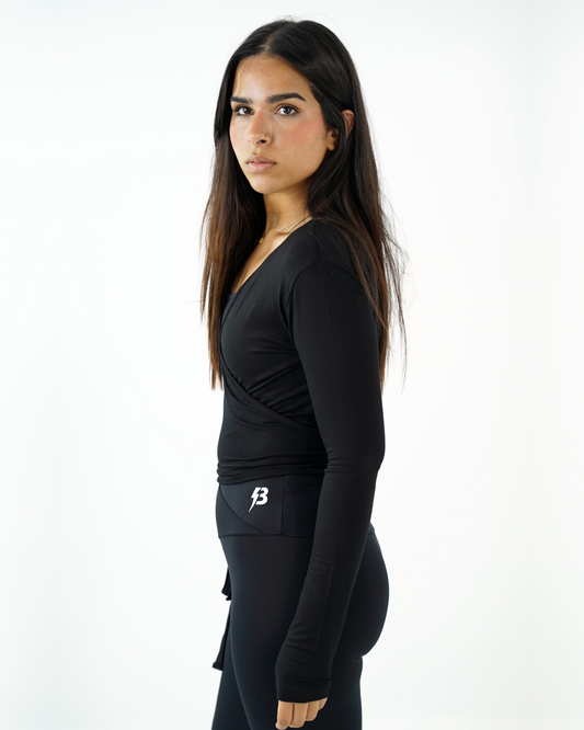 Wrap Long Sleeve Top - Black