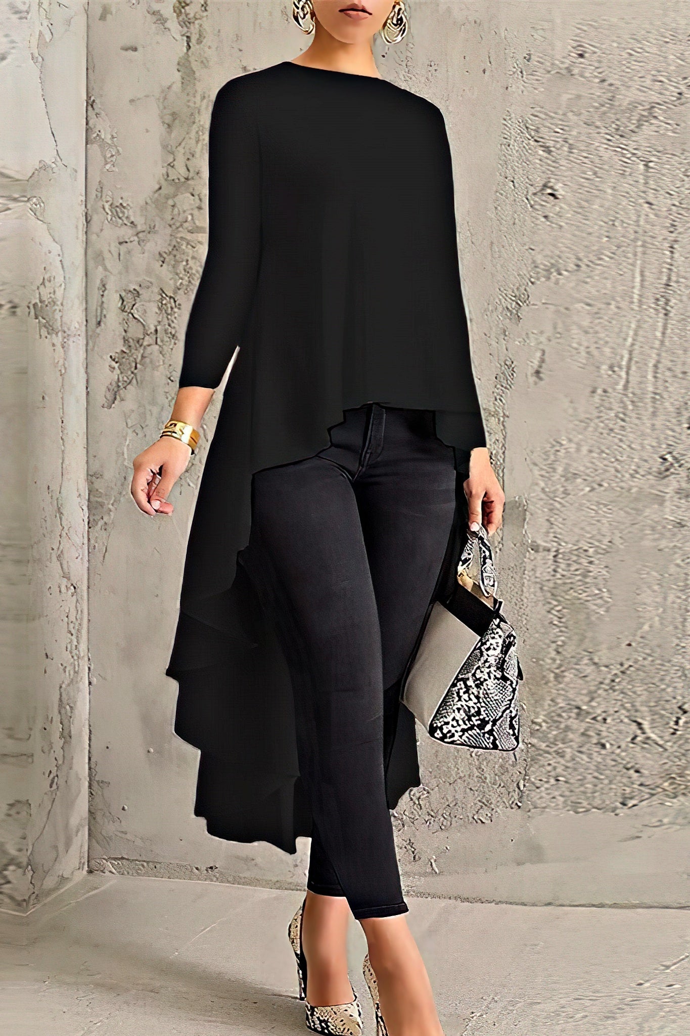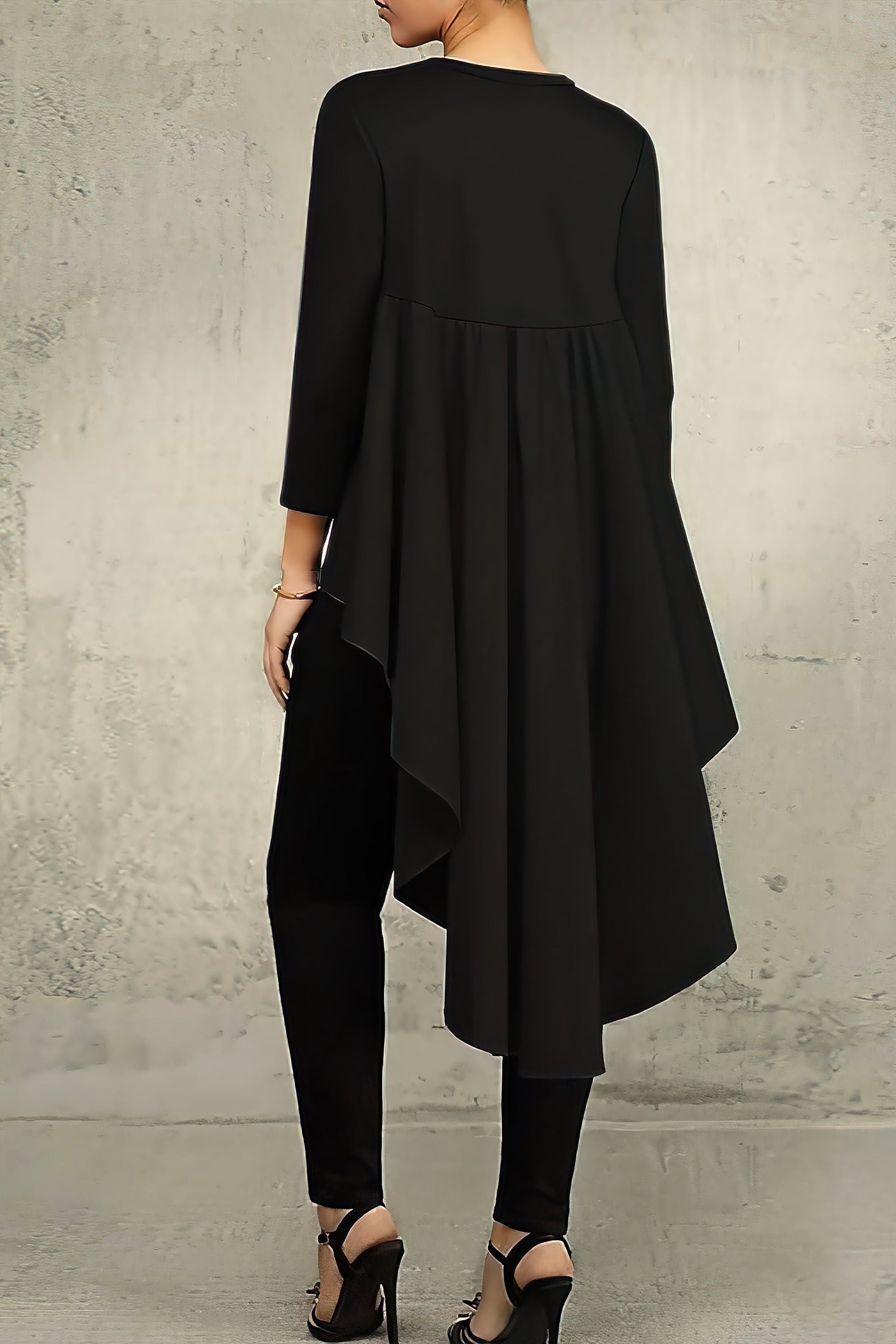 Elevate your everyday style with this sophisticated Elegant Asymmetrical Draped Tunic. Crafted with a high-low hem that flows gracefully, it creates a striking silhouette. The soft, flowy fabric drapes effortlessly over your body, providing both comfort and chic elegance. Perfect for pairing with skinny jeans or tailored pants, this tunic is designed for the modern woman who values both style and ease. Ideal for casual outings or dressed-up events, this top will become a wardrobe favorite.