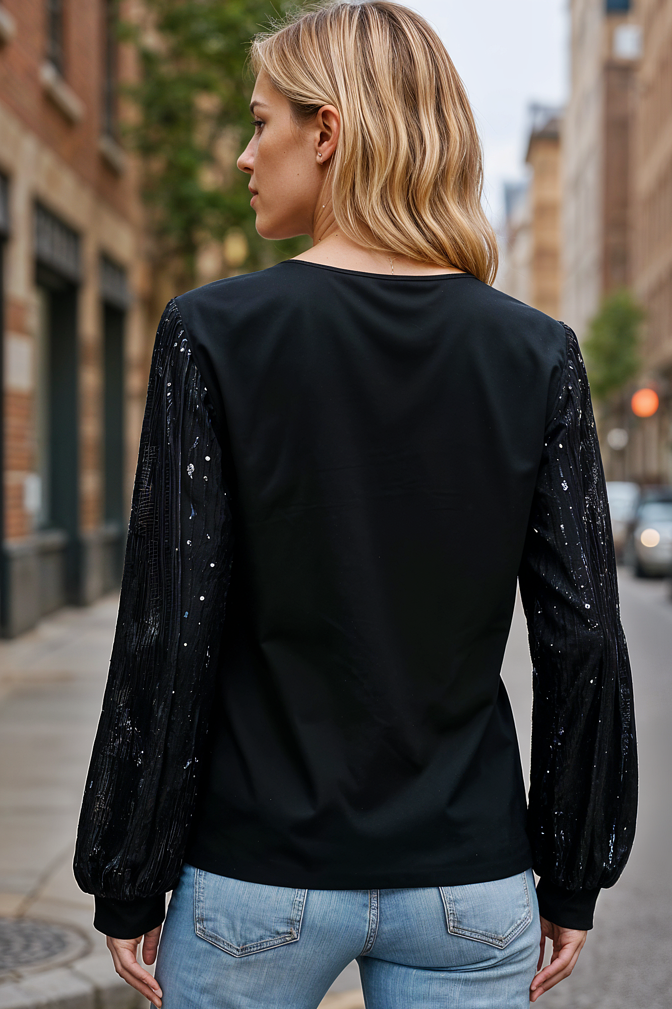 Midnight Sparkle Sequin Sleeve Top