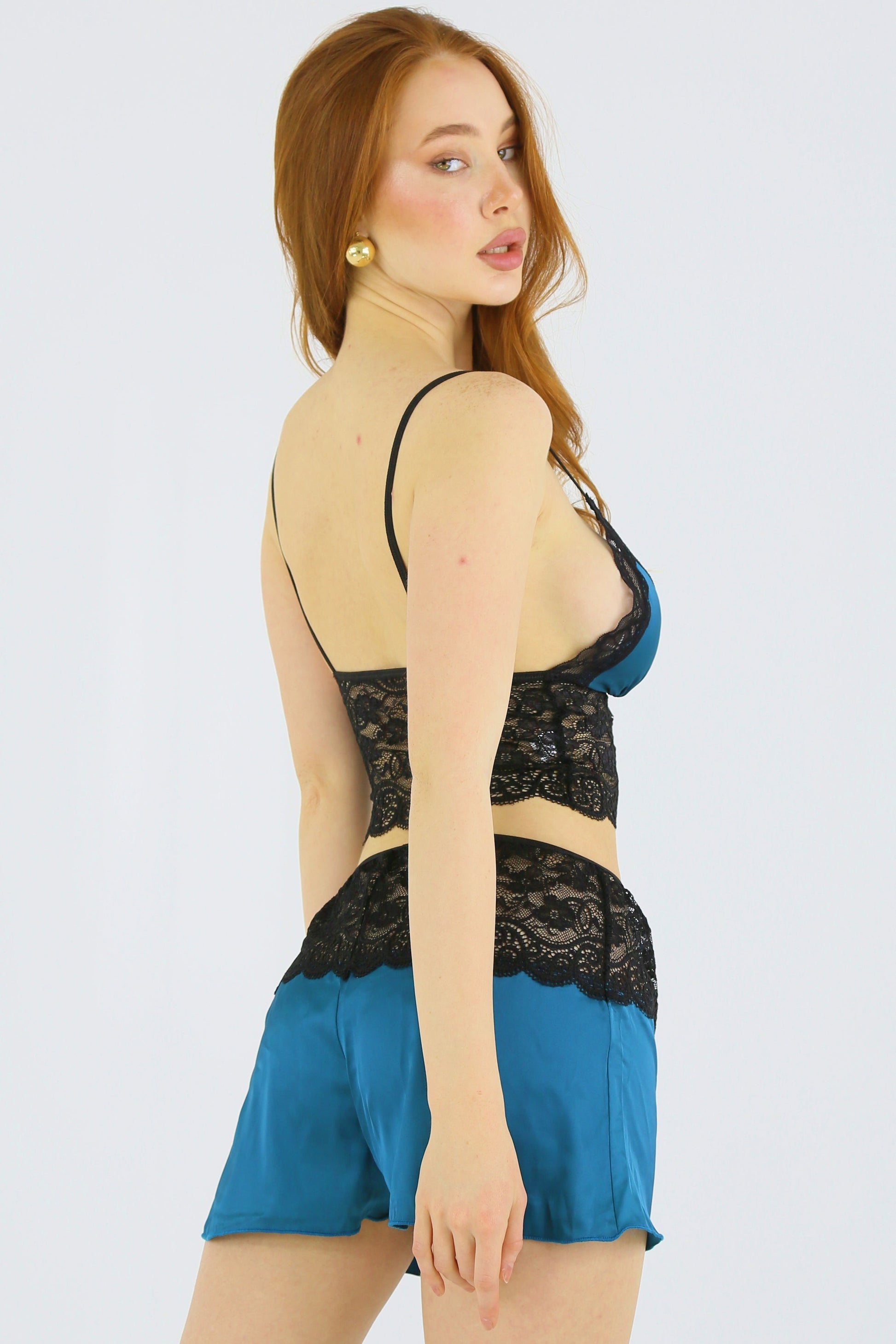 Turn up the heat with the Ruby Lace Delight Set. This vibrant ensemble combines the richness of ruby satin with delicate black lace. The camisole top and matching shorts are perfect for a sultry night in or a special occasion.