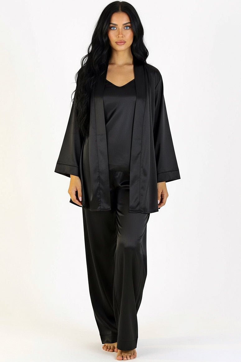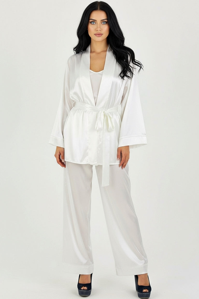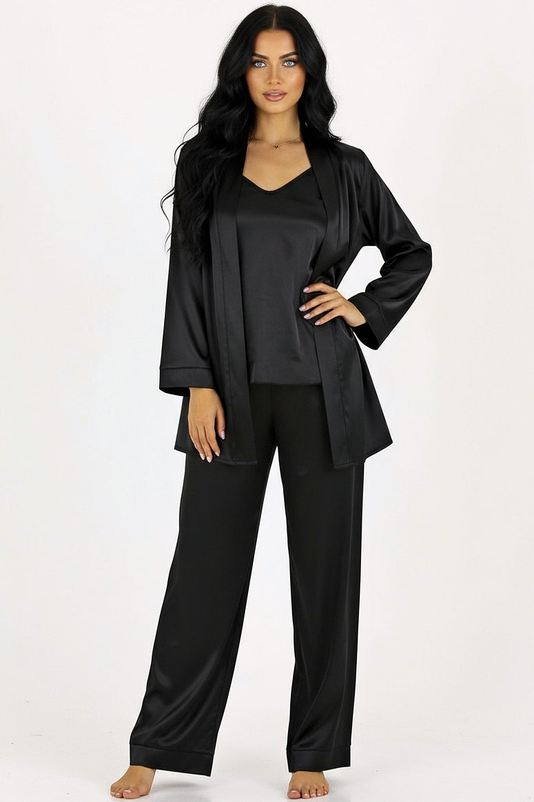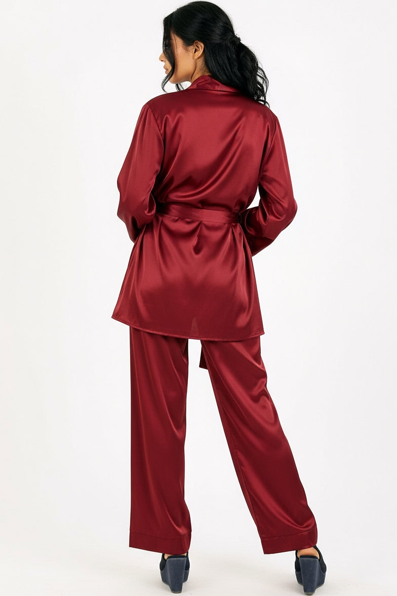 Discover the beauty of simplicity with the Sleek Satin Pajama Set. This elegant ensemble features a sleek satin top and matching pants. The minimalist design and luxurious fabric make it a perfect choice for any occasion.